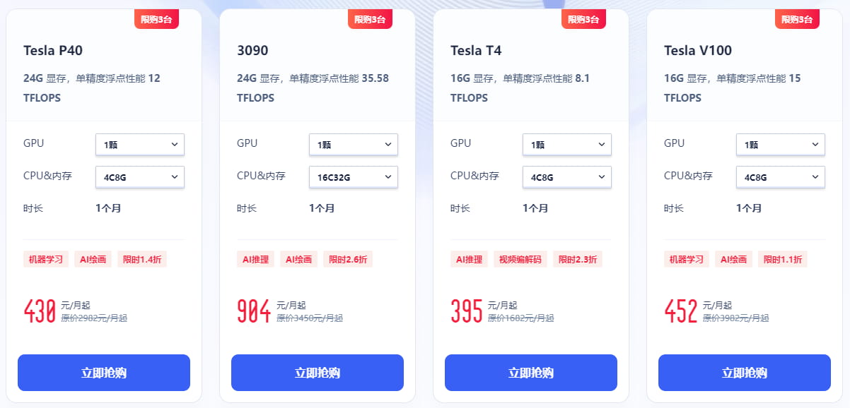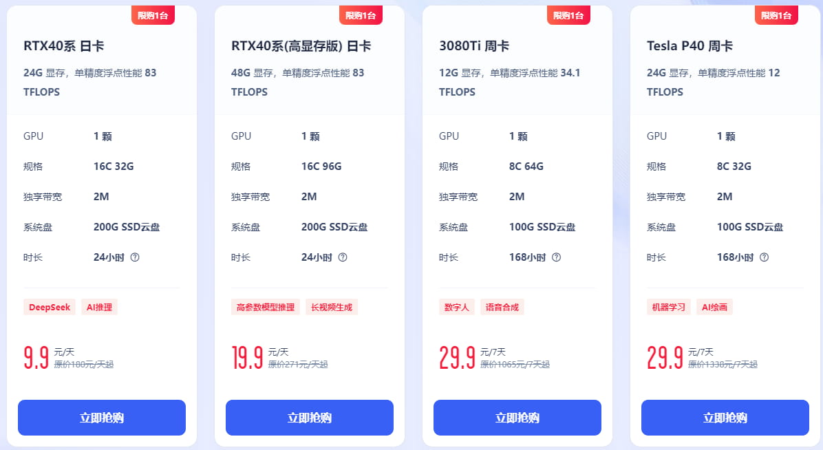 9.9元起畅享高性能GPU云服务器,产品新用户均可参与,同一用户限试用一种机型。