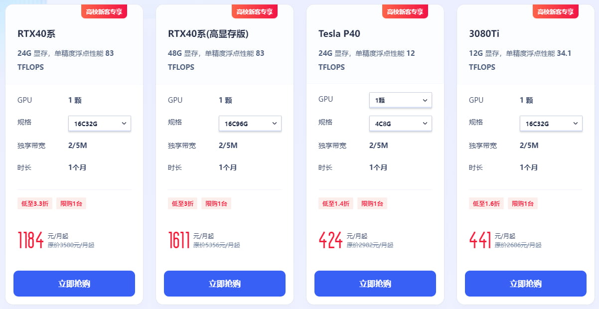 UCloud GPU云服务器高校专区提供多种方案可选,新客专属优惠1.4折起。