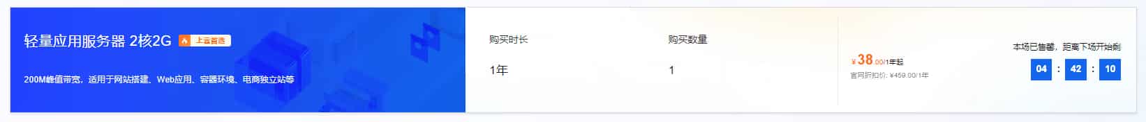 阿里云上云首选云服务器限量抢购,2核2G配置低至38元/年,每天两场(上午10:00,下午15:00),助力低成本上云。
