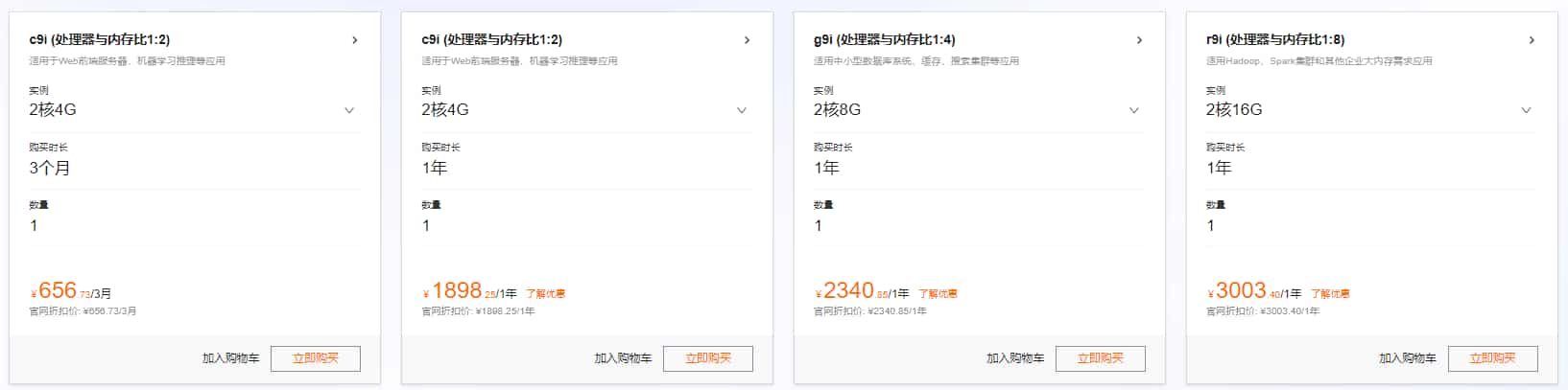 阿里云高性能企业级云服务器甄选c9i/g9i/r9i实例搭载采用阿里云全新CIPU架构,极致性能,适用于机器学习推理应用,数据分析等场景。