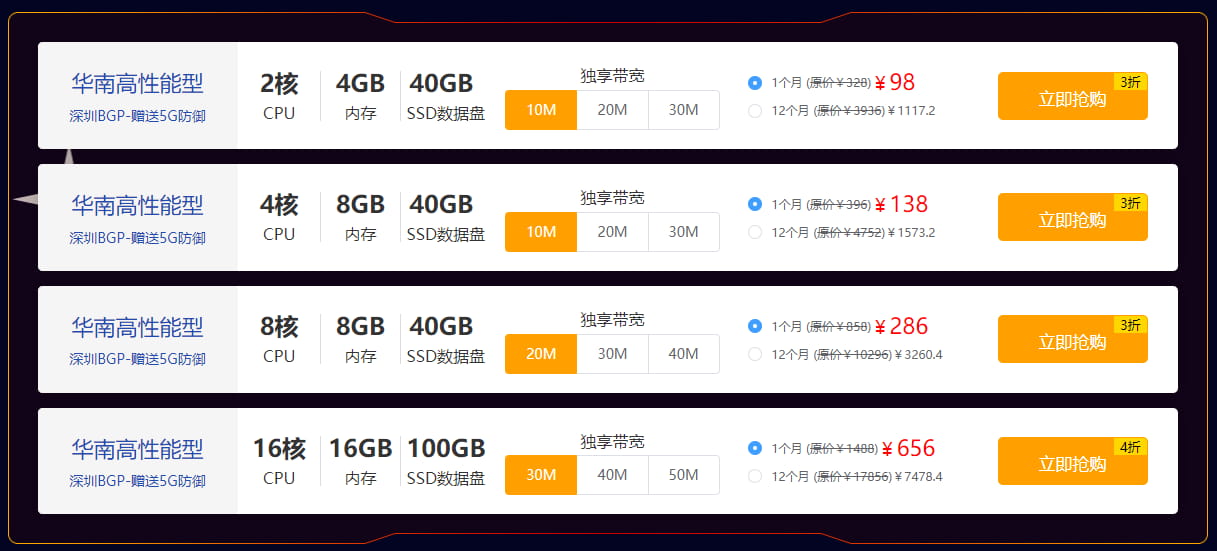 尊云12.12优惠活动正式开始啦,新老用户同享,全场低至3折起,郑州云服务器3折低至32元/月,深圳云服务器3折低至98元/月,香港云服务器4折低至78元/月。购买续费同价,每天限量出售,先买先得,有需要的朋友快快来抢购吧。